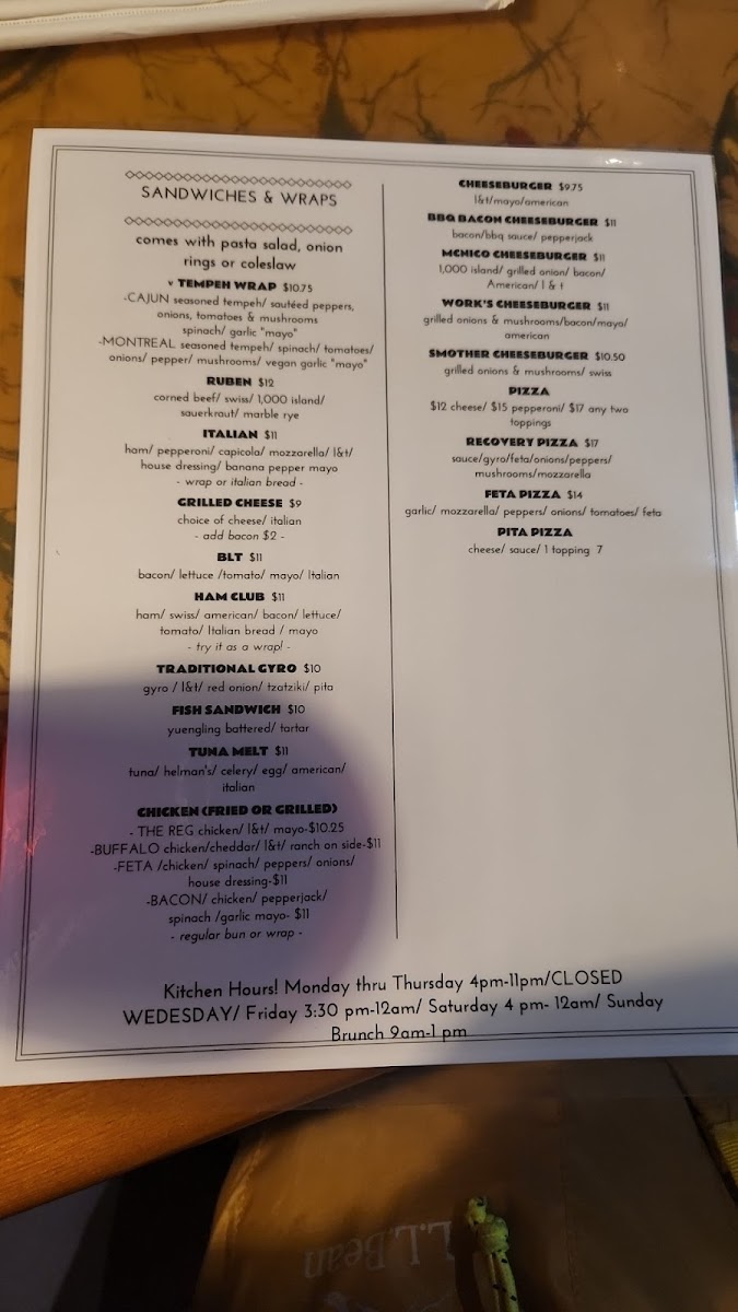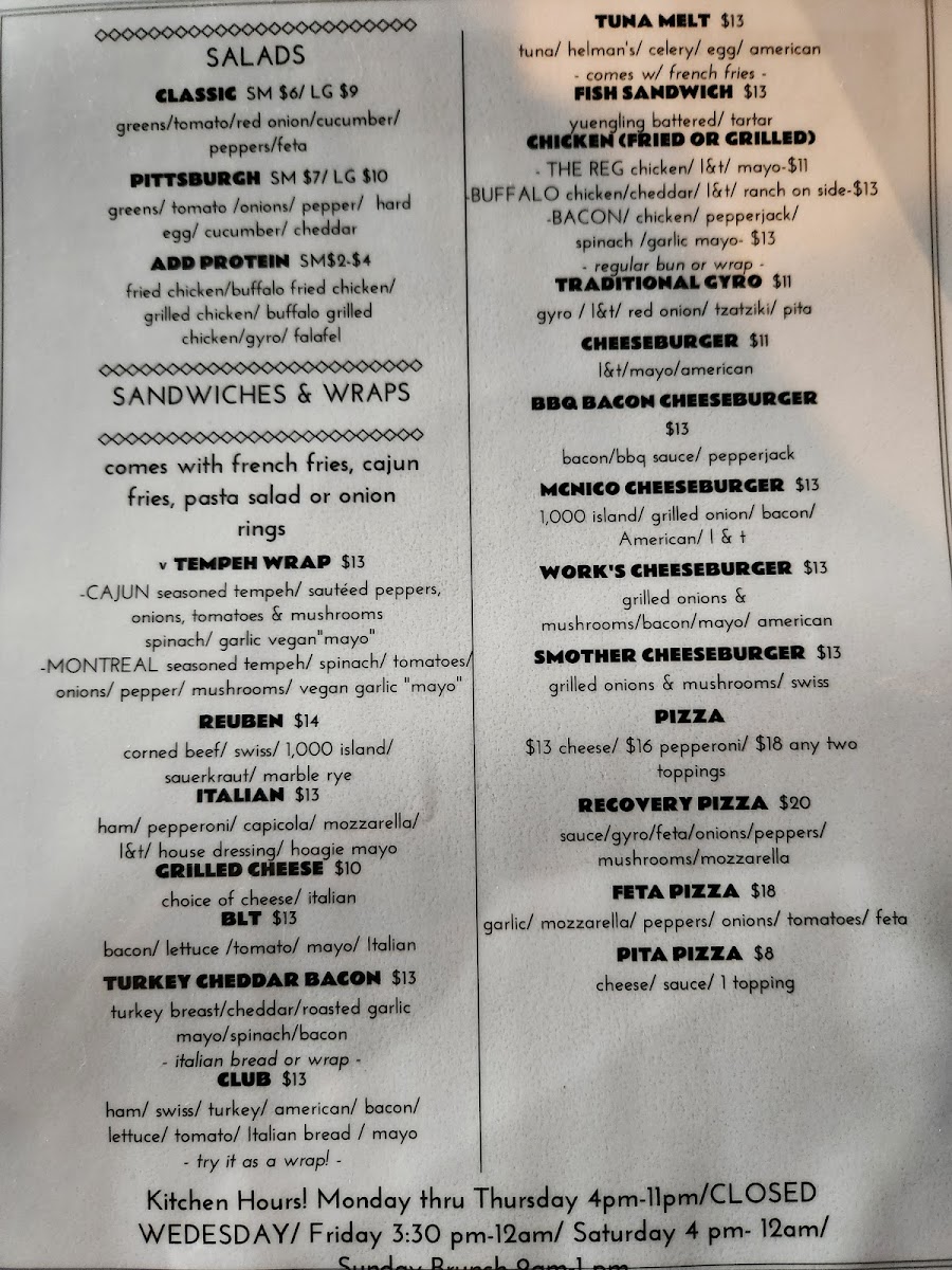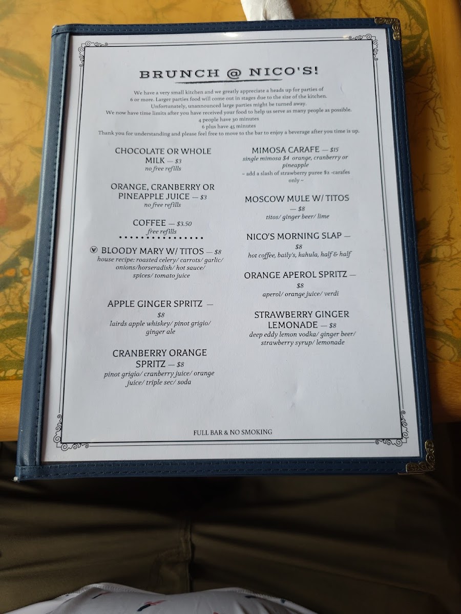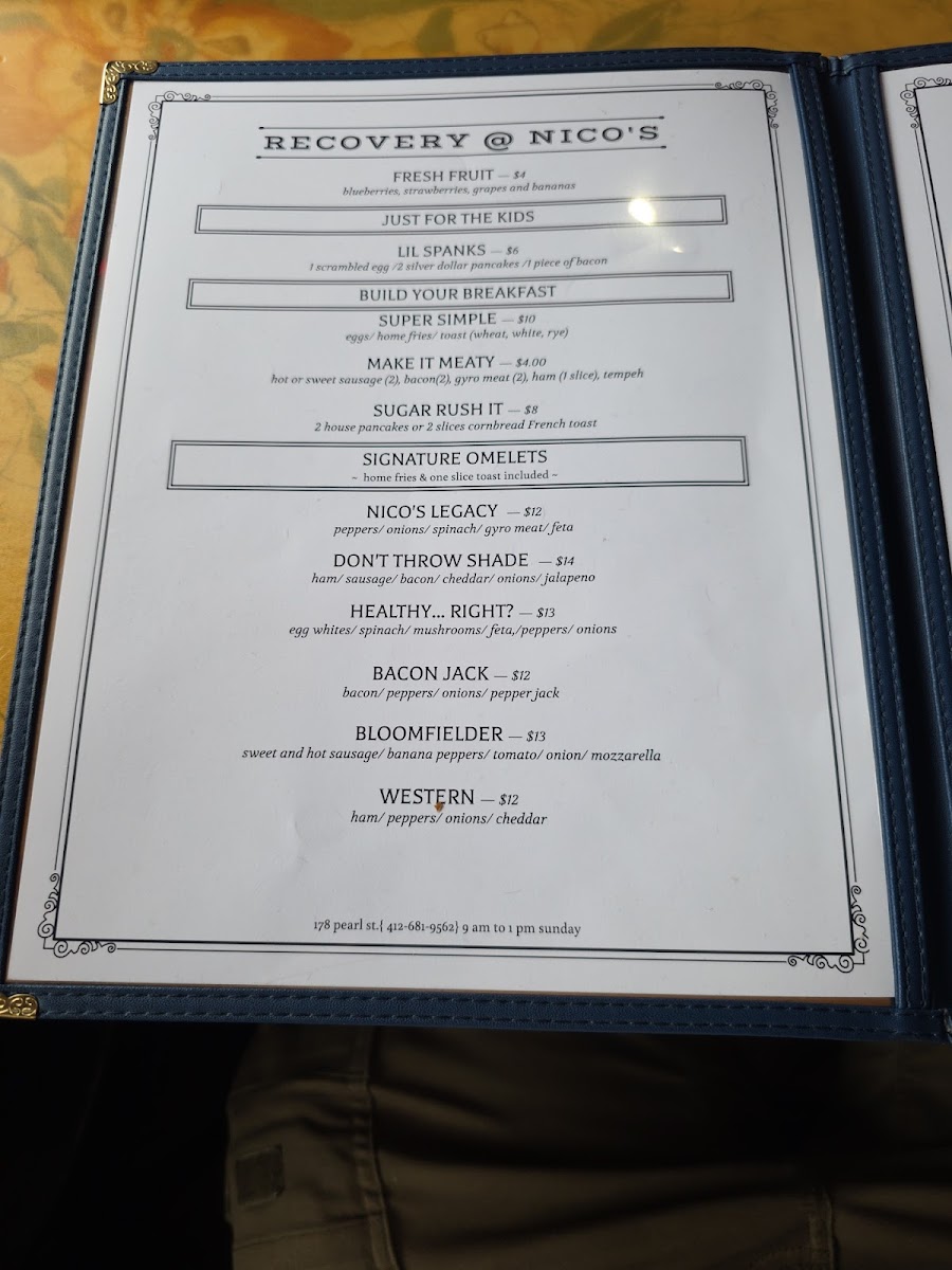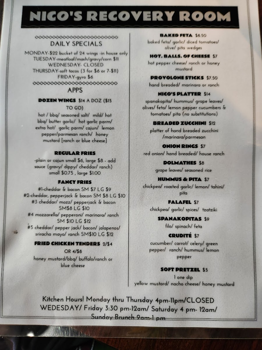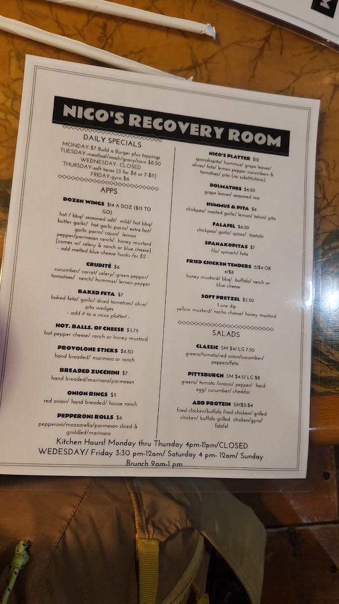 Nico's Recovery Room Menu